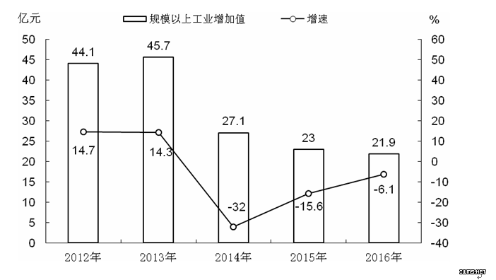 图5 2012—2016年规模以上工业增加值及增长速度