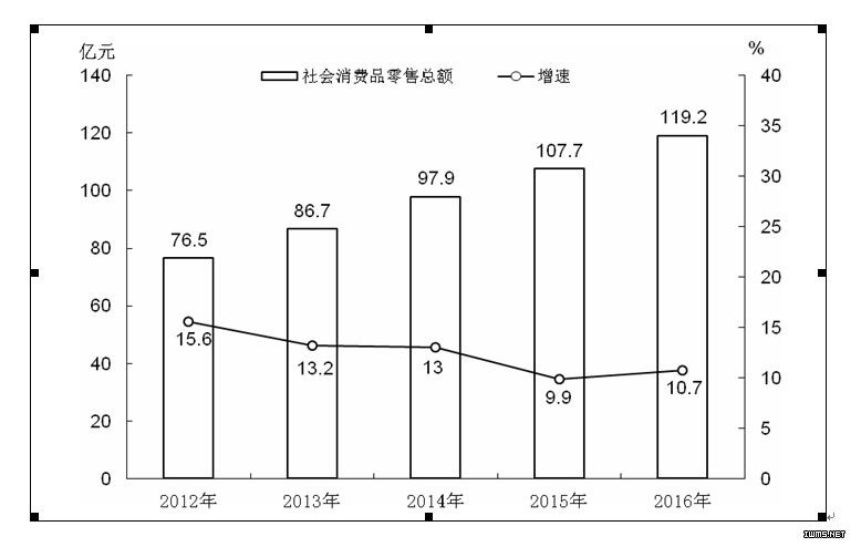 图1 2012-2016年全市地区生产总值及其增长速度
