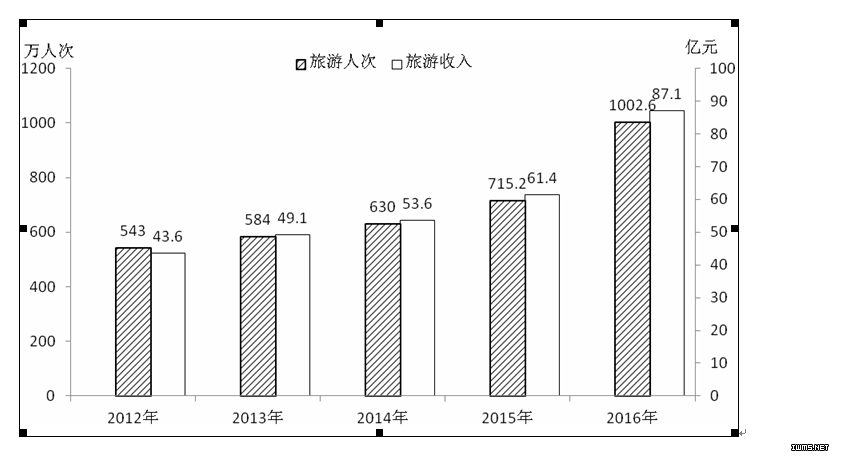 图9 2012-2016年全市旅游人次和收入
